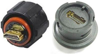 來自 EDAC 的 180 度 PCB 公頭和電纜母頭安裝 19 針 HDMI 連接器(Waterproof HDMI Connectors)