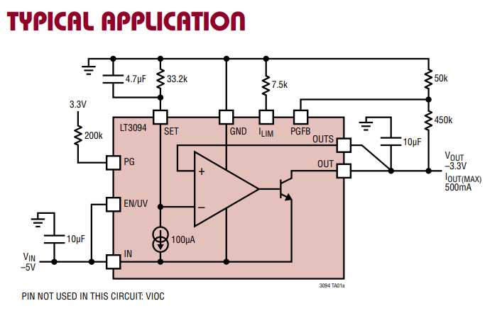 LT3094 500 mA 超低噪聲負(fù)向穩(wěn)壓器應(yīng)用
