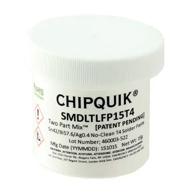 ![]() | | SMDLTLFP15T4 | 焊接-焊接和維修產(chǎn)品 | TWO PART MIX SOLDER PASTE | ¥184.14293 | 在線訂購 |
