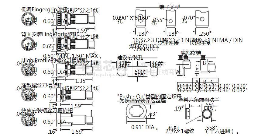 一個完整的選擇和款式的選擇滿足各種保險絲 - 中支架的設計需要。旨在消除電氣的可能性休克,如IEC標準60065和60127.通用定義保險絲座的身體將接受3AG ,的5 x 20mm ,并2AG保險絲規(guī)格根據(jù)旋鈕選擇。使得庫存減少機構和提供了旋鈕交換的通用性。反撩功能消除電路中斷時,旋鈕被意外按下。五保險絲座類型保證了設計的靈活性。提供兩種風格的旋鈕 - 螺絲刀槽或fingergrip 。防滴選項可以用螺絲刀槽旋鈕式的。提供兩種終端款式 - 雙用途用于焊接或16"分之3NEMA快速連接;和4"分之1 NEMA / DIN快速連接??焖偃蹟嗥鞒叽鐦俗R設置有上fingergrip旋鈕和字母顏色編碼螺絲刀槽旋鈕。