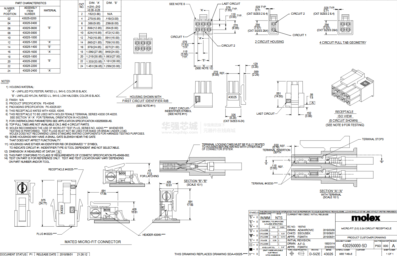 | 0430251400 | Molex | Micro-Fit 母端子殼體(插頭),14pin,2排,V-0,黑色,低鹵素 | 立即購買 |