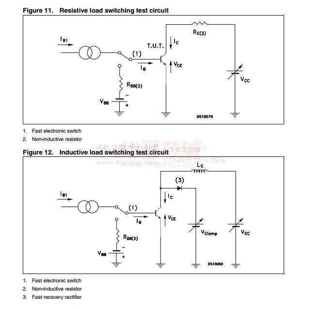 集電極-發(fā)射極反向擊穿電壓BVCEO:MJE13006 300V; MJE13007 400V (IC=10mA; IB=0)