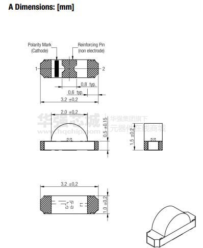 LED 大小:3.2 mm x 1 mm