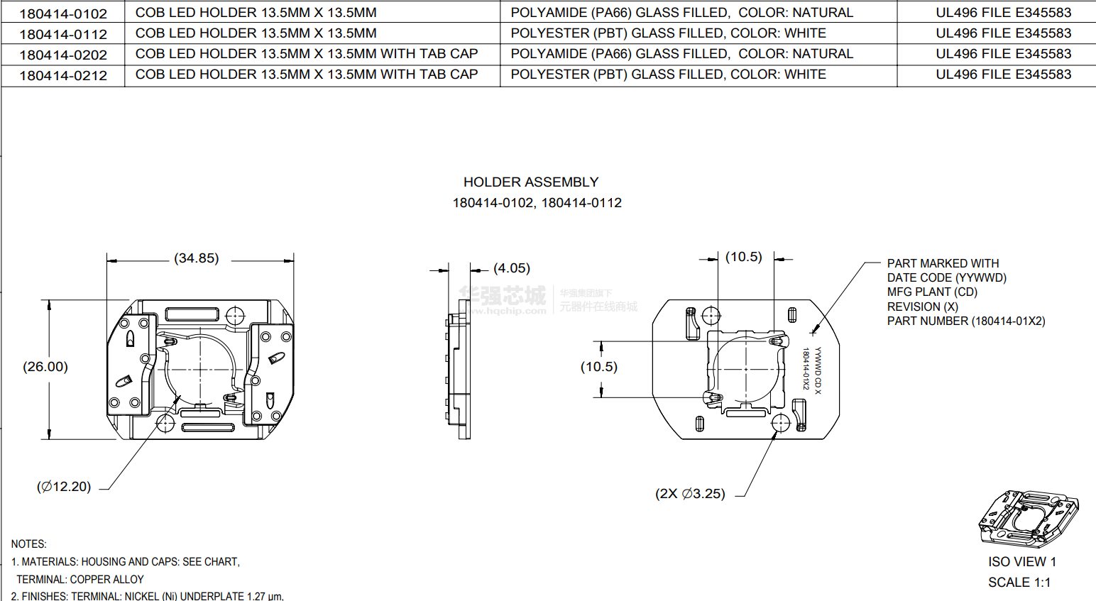 1.MATERIALS: HOUSING AND CAPS: SEE CHART,TERMINAL: COPPER ALLOY