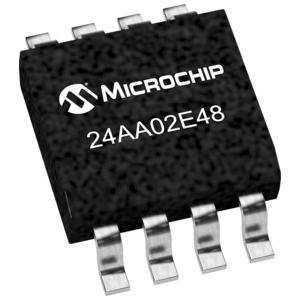 The Microchip Technology Inc. 24AA02E48 is a 2Kb Serial EEPROM with pre-programmed EUI-48 MAC address. The device is organized as two blocks of 128 x 8-bit memory with a 2-wire serial interface. Low-voltage design permits operation down to 1.7V, with maximum standby and active currents of only 1 μA and 1 mA, respectively. The 24AA02E48 also has a page write capability for up to 8 bytes of data. The 24AA02E48 is available in the standard 8-pin SOIC and 5-lead SOT-23 packages.