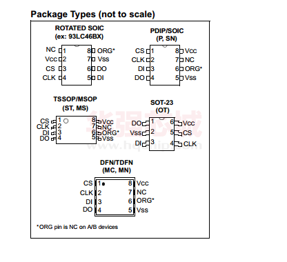 Microchip的93XX46A/B/C設(shè)備是1K位低電壓串行電可擦除PROM中(EEPROM).字選擇型設(shè)備如該93AA46C,93LC46C或93C46C依賴在外部邏輯電平驅(qū)動(dòng)ORG引腳設(shè)置字的大小.對(duì)于專用的8位通訊,93AA46A,93LC46A或93C46A設(shè)備可用,而93AA46B,93LC46B和93C46B設(shè)備提供專用的16位通信.先進(jìn)CMOS技術(shù)使得這些器件非常適合低電力,非易失性存儲(chǔ)器應(yīng)用.整個(gè)93XX系列可在標(biāo)準(zhǔn)封裝INCLUD-ING 8引腳PDIP和SOIC封裝,以及先進(jìn)的包裝包括8引腳MSOP,6引腳SOT-23,8引腳2x3DFN和8引線TSSOP封裝.無(wú)鉛(純亞光Sn)涂層也可用
