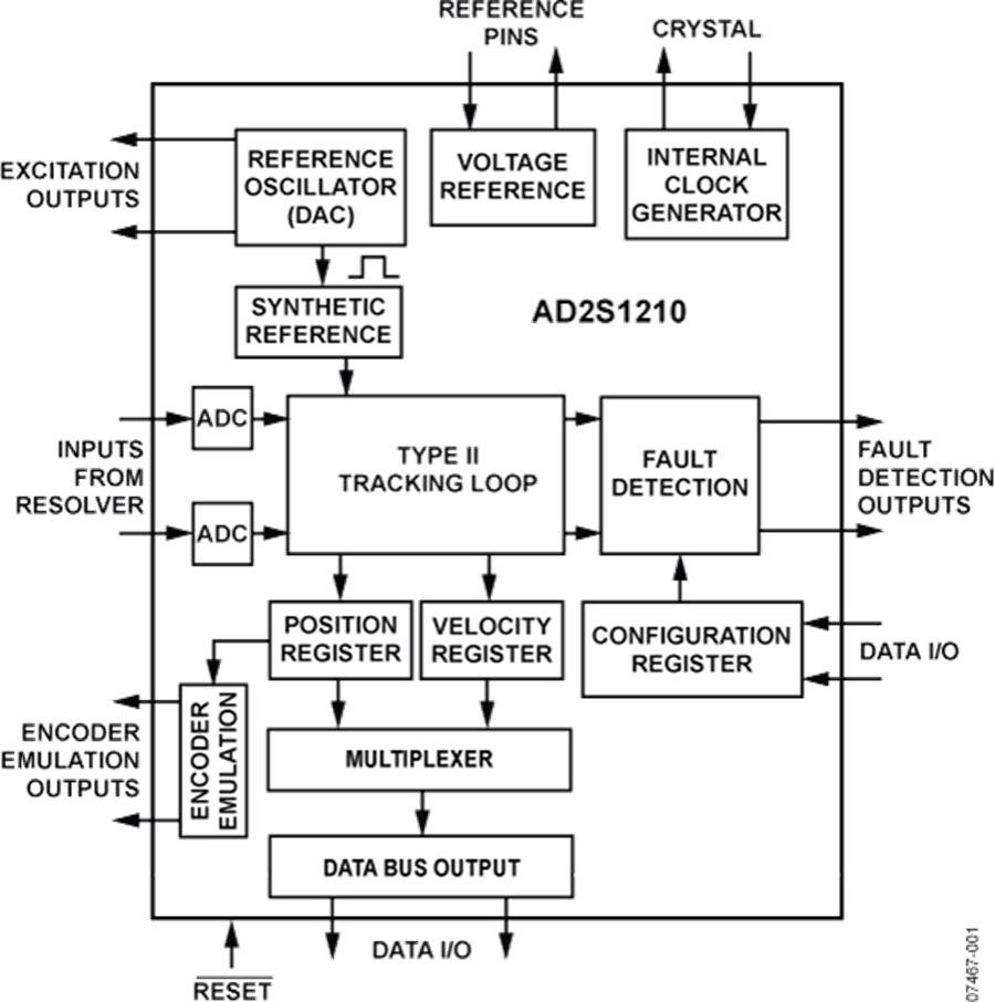 AD2S1210是一款10位至16位分辨率旋變數(shù)字轉(zhuǎn)換器,集成片上可編程正弦波振蕩器,為旋變器提供正弦波激勵。