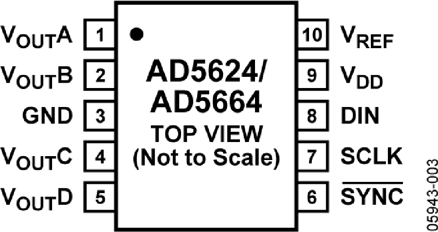 低功耗、四通道nanoDACAD5664: 16位AD5624: 12位