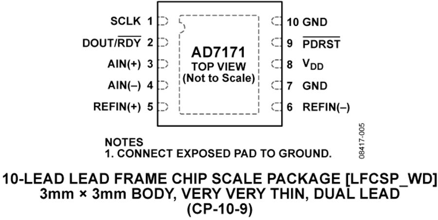 AD7171采用2.7 V至5.25 V電源供電,并提供10引腳LFCSP封裝。