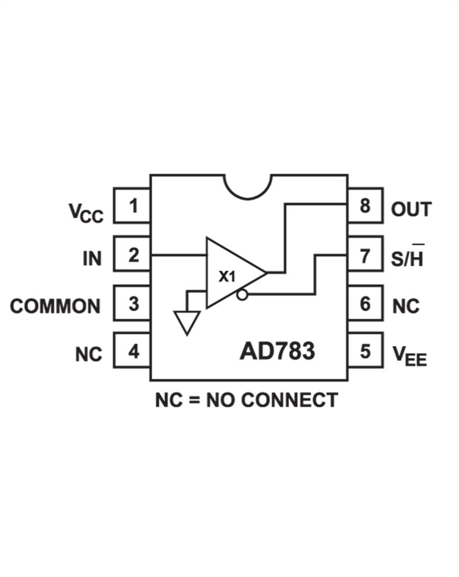 AD783采用ADI公司的ABCMOS工藝制造,集高性能、低噪聲雙極性電路與低功耗CMOS于一體,提供一種高精度、高速、低功耗采樣保持放大器(SHA)。