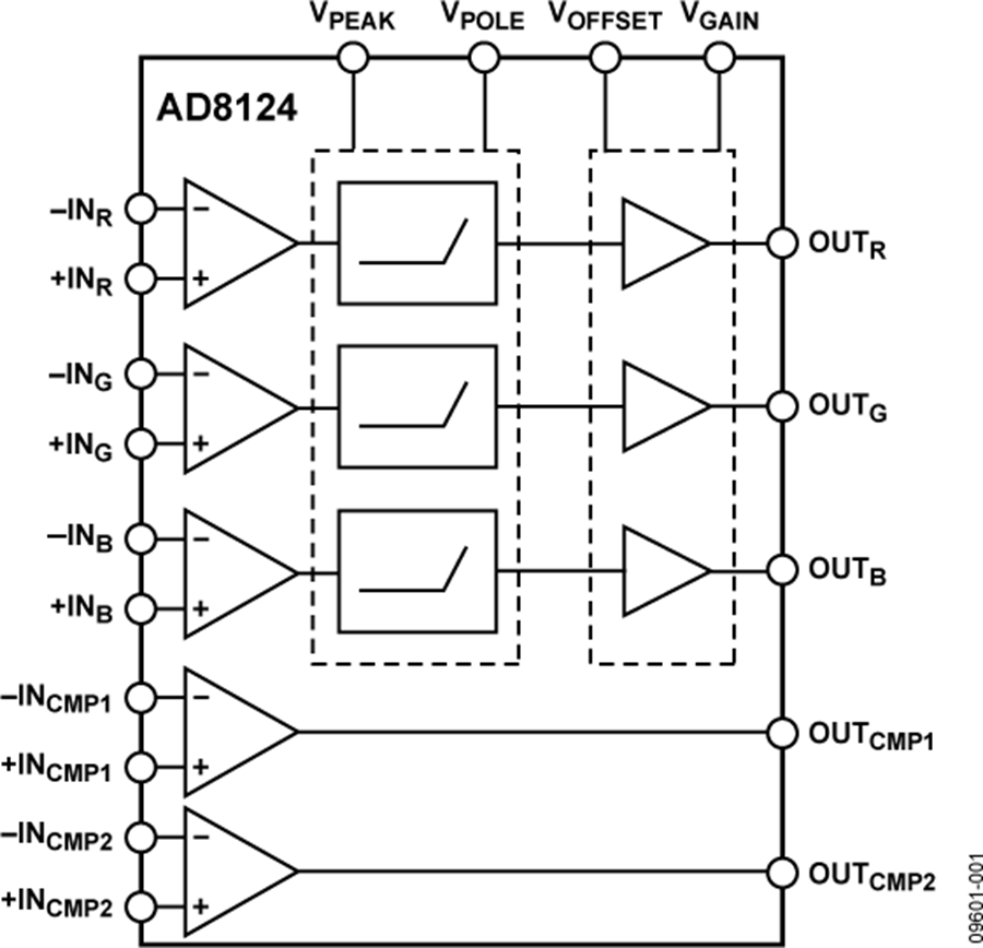 AD8124是一款三通道、高速、差分接收器和均衡器,可以補償最長200米UTP和同軸電纜的傳輸損耗。各增益級匯總在一起,以便獲得最接近的電纜反轉頻率響應。該器件內部的邏輯電路控制各增益級的增益功能,從而能在中短電纜上實現(xiàn)最低噪聲。這種技術不僅能優(yōu)化低噪聲、中短距離應用的電纜性能,同時能提供長電纜均衡(最長達200米)所需的高增益帶寬。各通道均具有高阻抗差分輸入端,非常適合與電纜直接接口。
