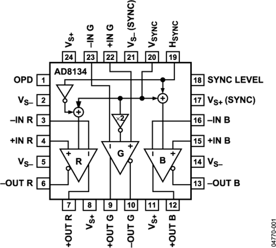 AD8134采用24引腳LFCSP封裝,工作溫度范圍為-40°C至+85°C擴展工業(yè)溫度范圍。