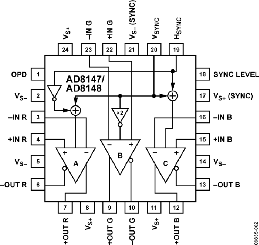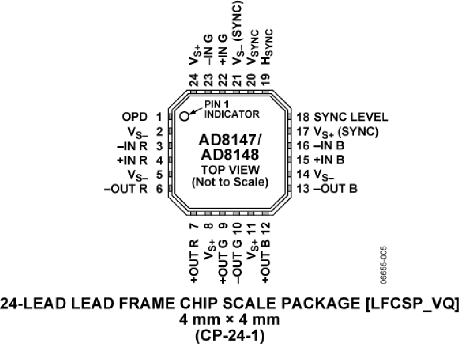 AD8146/AD8147/AD8148采用24引腳LFCSP封裝,工作溫度范圍為?40℃至+85℃。