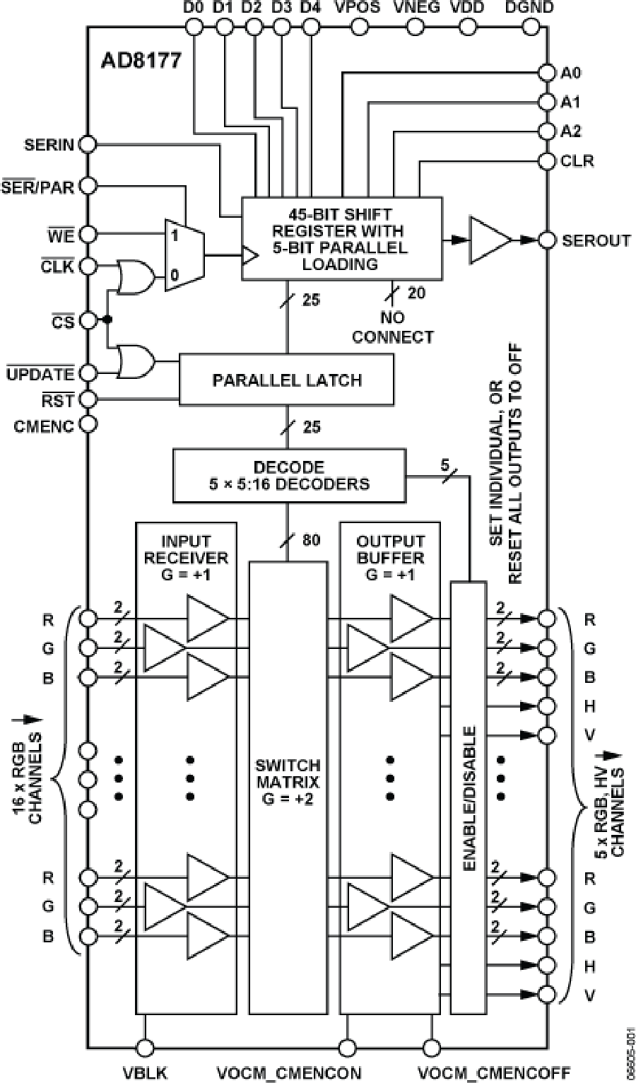 與16 x 9開關(guān)陣列AD8175/AD8176 和16 x 5開關(guān)陣列 AD8178 引腳兼容