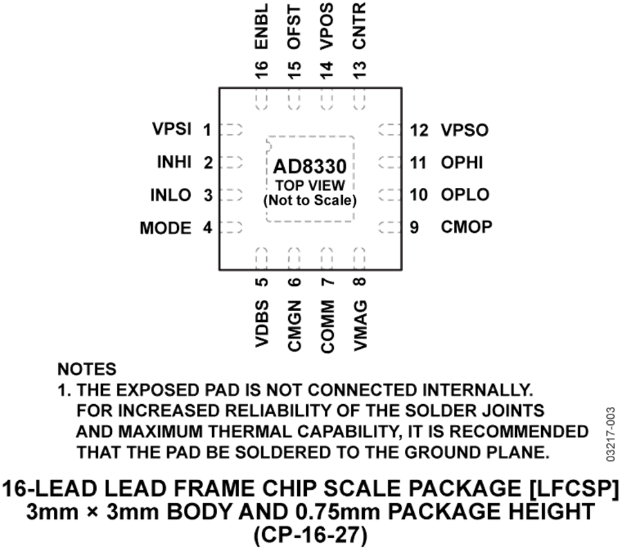 AD8330采用16引腳LFCSP和16引腳QSOP封裝,額定工作溫度范圍為?40°C至+85°C。