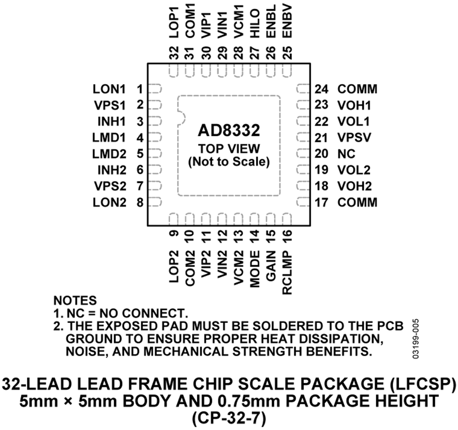 AD8332的工作溫度范圍為-40℃至+85℃,采用28引腳TSSOP和32引腳LFCSP兩種封裝。