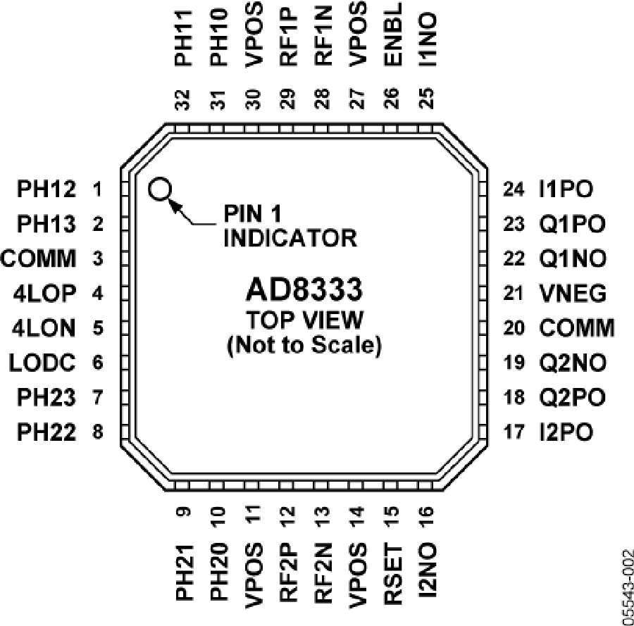 AD8333采用32引腳LFCSP (5 mm × 5 mm)封裝,額定溫度范圍為?40°C至+85°C工業(yè)溫度范圍。