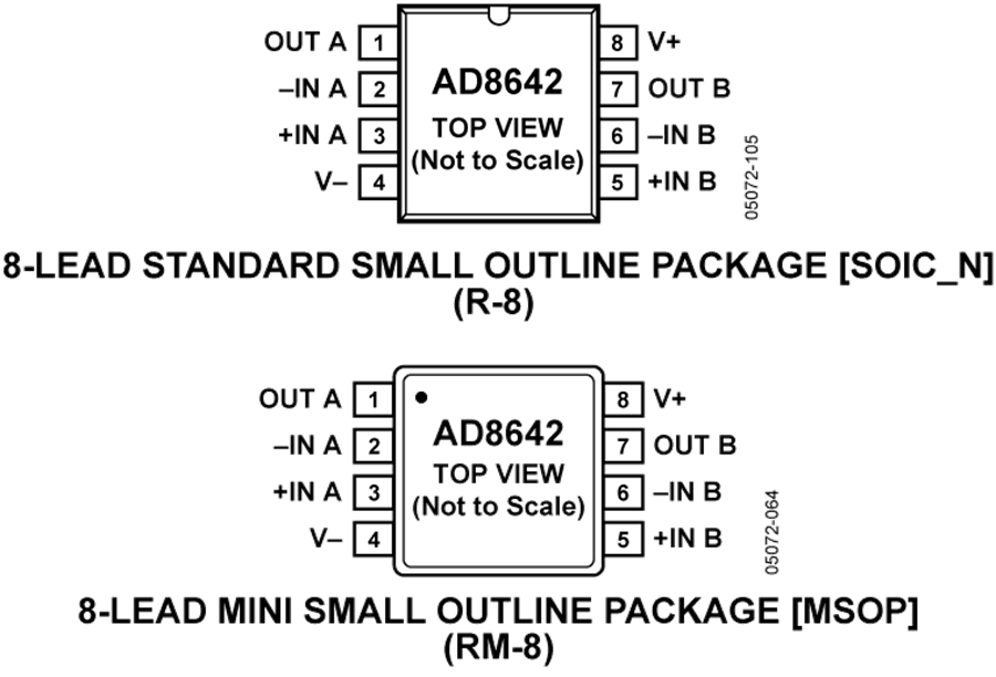 AD8641/AD8642/AD8643的額定溫度范圍為-40°C至+125°C擴(kuò)展工業(yè)溫度范圍。AD8641提供5引腳SC70和8引腳SOIC無(wú)鉛封裝。AD8642提供8引腳MSOP和8引腳SOIC無(wú)鉛封裝。AD8643提供14引腳SOIC和3 mm × 3 mm、16引腳LFCSP無(wú)鉛封裝。