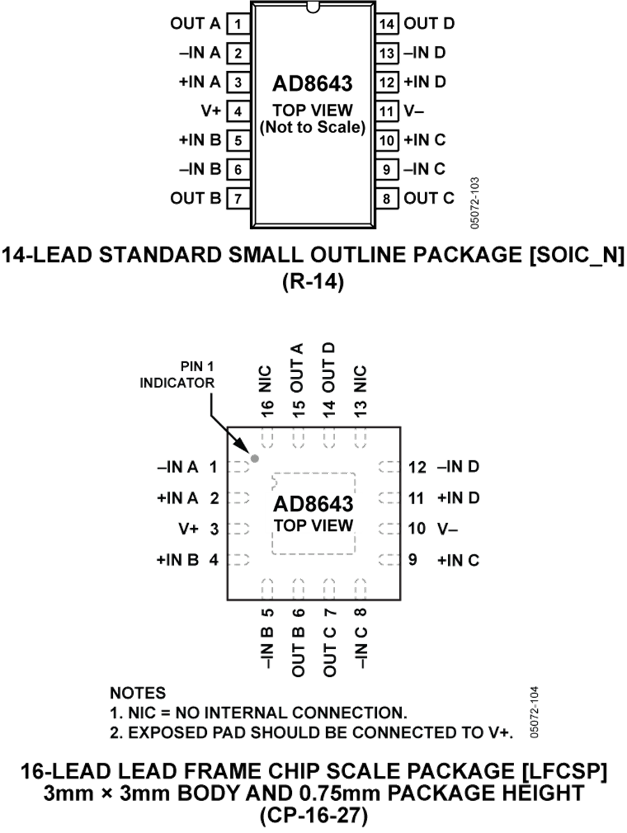 AD8641系列的額定溫度范圍為-40℃至+125℃擴展工業(yè)溫度范圍,AD8641提供5引腳SC70和8引腳SOIC表面貼裝兩種封裝。AD8642采用8引腳MSOP和8引腳SOIC兩種封裝。AD8643采用3mm x 3mm、16引腳LFCSP和14引腳SOIC兩種封裝。