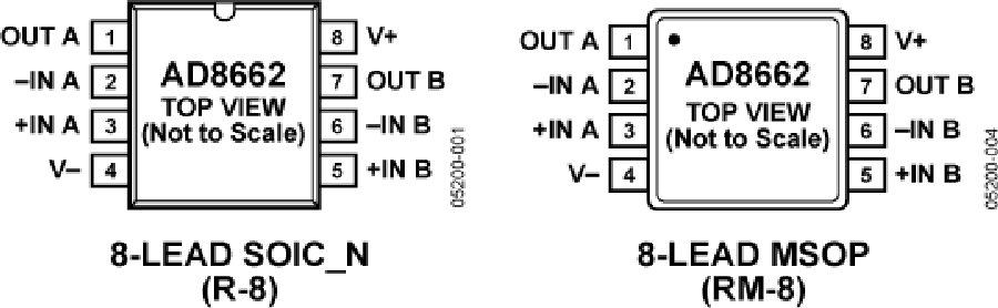 單通道AD8661提供窄體8引腳SOIC和超薄體、雙排引腳、8引腳LFCSP兩種封裝。AD8661 SOIC封裝的額定溫度范圍為?40°C至+125°C擴(kuò)展工業(yè)溫度范圍。AD8661 LFCSP的額定溫度范圍為?40°C至+85°C工業(yè)溫度范圍。AD8662提供8引腳窄體SOIC和8引腳MSOP兩種封裝,額定溫度范圍均為?40°C至+125°C的擴(kuò)展工業(yè)溫度范圍。AD8664提供14引腳窄體SOIC和14引腳TSSOP兩種封裝,額定溫度范圍均為?40°C至+125°C的擴(kuò)展工業(yè)溫度范圍。