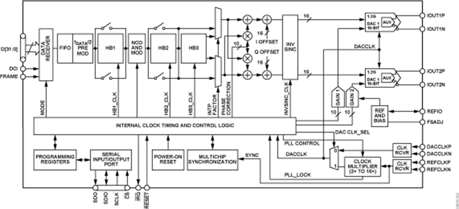 AD9125是一款雙通道、16位、高動態(tài)范圍TxDAC+?數(shù)模轉(zhuǎn)換器(DAC),提供1000 MSPS采樣速率,可以產(chǎn)生最高達奈奎斯特頻率的多載波。它具有針對直接變頻傳輸應用進行優(yōu)化的特性,包括復合數(shù)字調(diào)制以及增益與失調(diào)補償。DAC輸出經(jīng)過優(yōu)化,可以與模擬正交調(diào)制器無縫接口,例如ADI公司的ADL537x F-MOD系列調(diào)制器。4線式串行端口接口允許對許多內(nèi)部參數(shù)進行編程和回讀。滿量程輸出電流可以在8.7 mA至31.7 mA范圍內(nèi)進行編程。該器件采用72引腳LFCSP封裝。產(chǎn)品聚焦1. 利用超低噪聲與交調(diào)失真(IMD)特性,從基帶到高中頻的寬帶信號可以實現(xiàn)高質(zhì)量合成。2. 專有的DAC輸出開關技術可增強動態(tài)性能。3. 電流輸出配置簡便,可以用于各種單端或差分電路拓撲結構。4. 靈活的CMOS數(shù)字接口允許標準32線式總線降至16線式總線。應用無線基礎設施