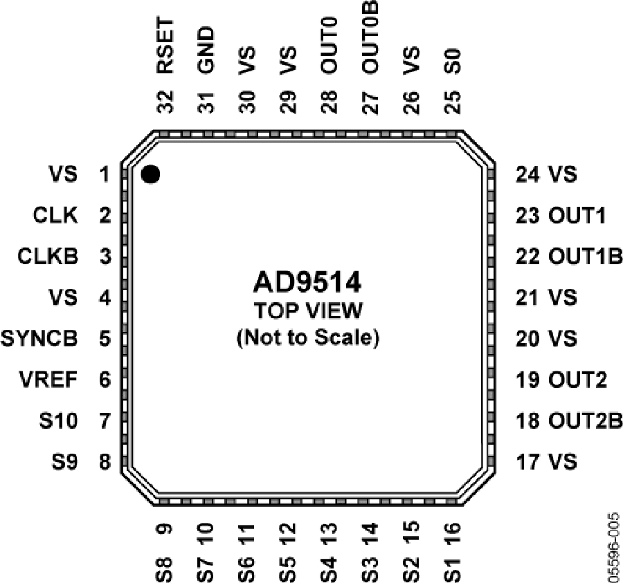 AD9514提供32引腳LFCSP封裝,采用3.3 V單電源供電。溫度范圍為?40°C至+85°C。