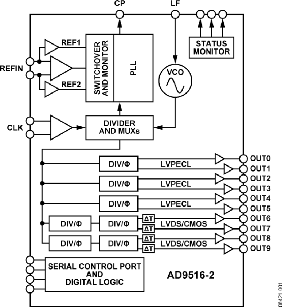 * AD9516泛指AD9516系列的所有器件。但是,使用AD9516-2時,它僅指AD9516系列的該特定器件。