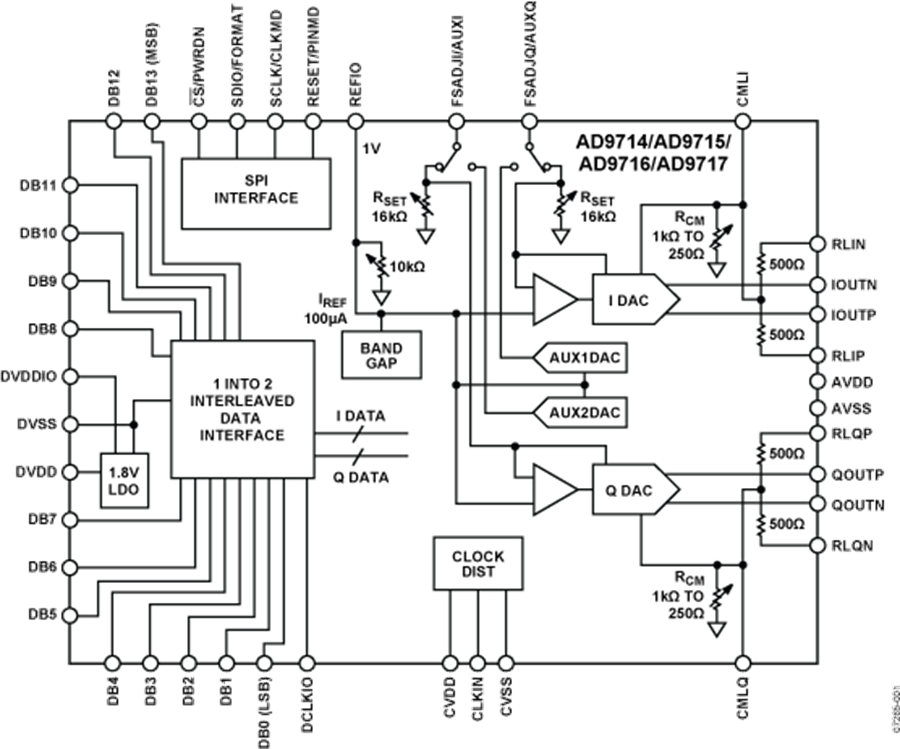 AD9714/AD9715/AD9716/AD9717具有靈活的電源電壓工作范圍(1.8V~3.3V)和低功耗特性,非常適合于便攜式和低功耗應(yīng)用。
