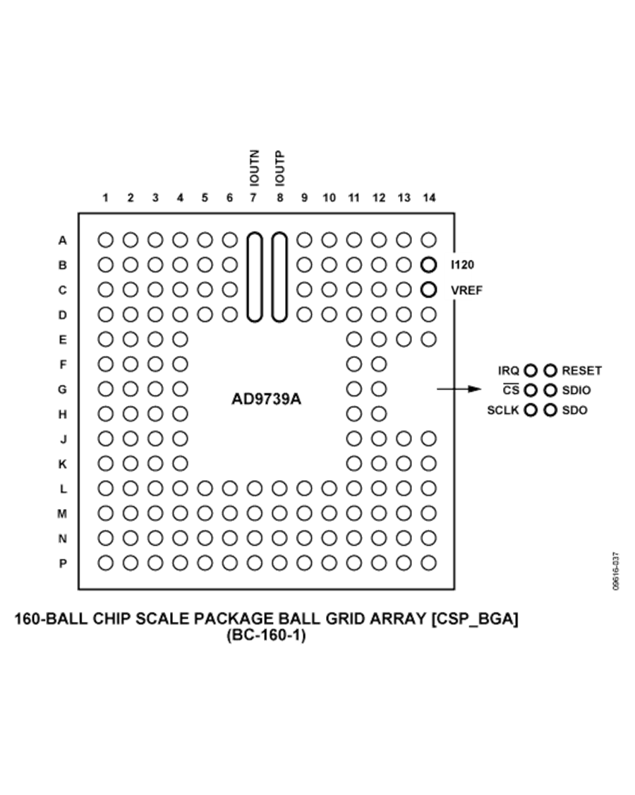 AD9737A/AD9739A采用0.18 μm CMOS工藝制造,以1.8 V和3.3 V電源供電。 這些器件提供160引腳芯片級(jí)球柵陣列封裝,封裝寄生效應(yīng)很低。