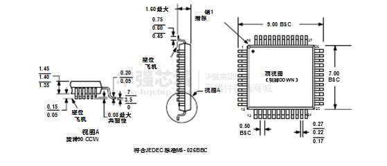 48引腳LQFP封裝(1.4毫米厚)
