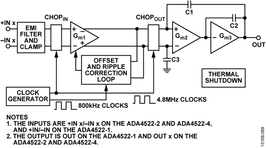 ADA4522-1/ADA4522-2/ADA4522-4的額定溫度范圍為?40°C至+125°C擴(kuò)展工業(yè)溫度范圍,采用8引腳MSOP和SOIC、14引腳SOIC和TSSOP封裝。