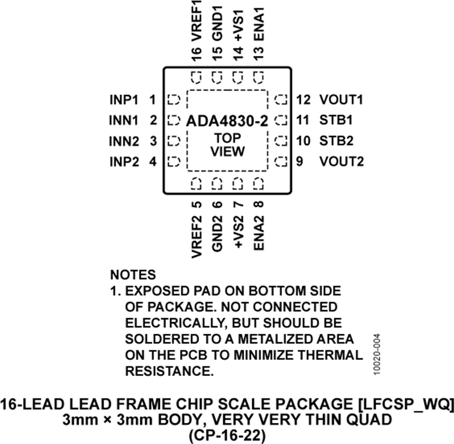 ADA4830-1和ADA4830-2分別采用8引腳和16引腳、3 mm × 3 mm LFCSP封裝,額定溫度范圍為汽車應(yīng)用溫度范圍?40°C至+125°C。