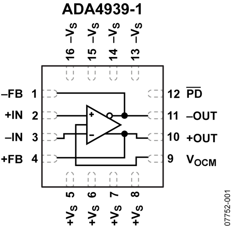 ADA4939-1(單通道)采用3 mm × 3 mm 16引腳LFCSP無鉛封裝而ADA4939-12(雙通道)采用4 mm × 4 mm 24引腳LFCSP無鉛封裝,引腳已經(jīng)針對電路板布局和最小化失真而優(yōu)化。ADA4939-1與ADA4939-2的工作溫度范圍為:-40°C ~ +105°C,電源電壓范圍均為:3.3 V ~ 5 V。
