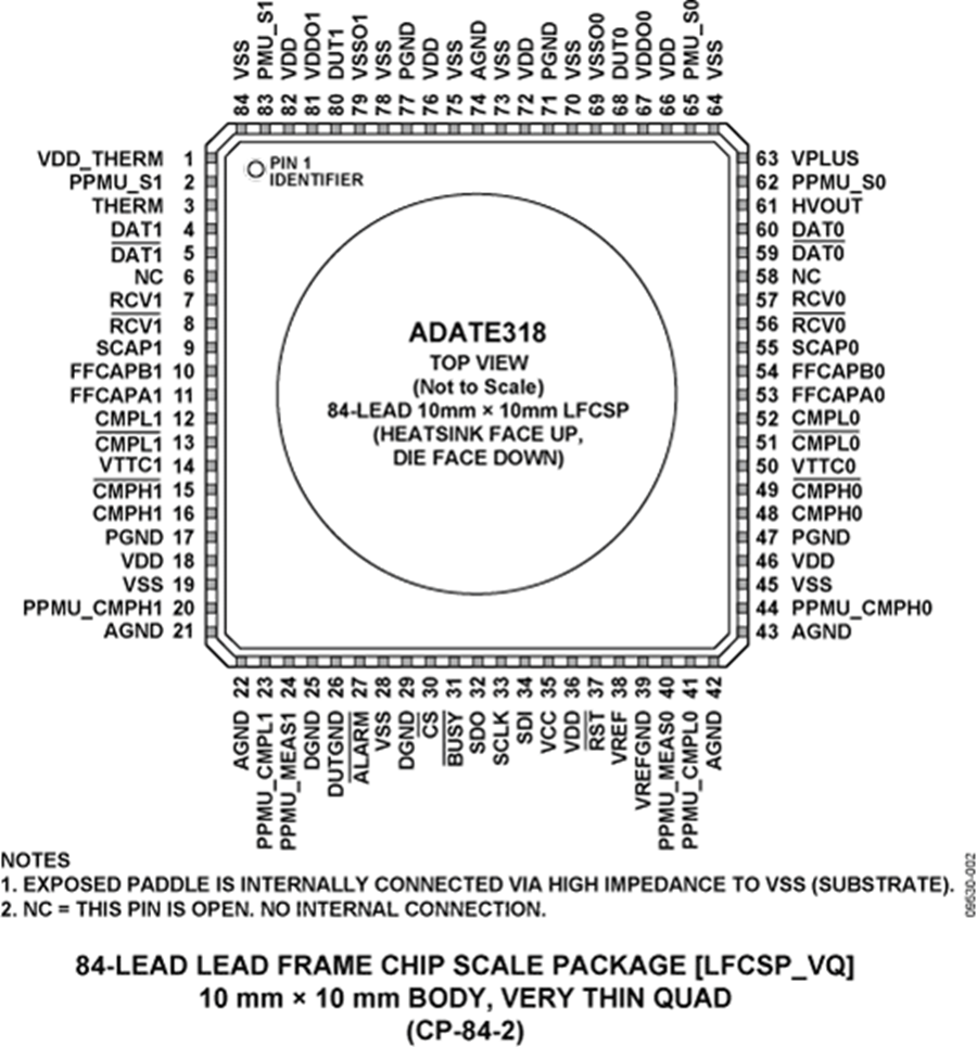 ADATE318利用串行可編程接口(SPI)總線對(duì)所有功能模塊、DAC和片內(nèi)校準(zhǔn)常數(shù)進(jìn)行編程。它還有一個(gè)片內(nèi)溫度傳感器和過(guò)壓/欠壓故障箝位電路,用于監(jiān)控和報(bào)告器件溫度,以及工作期間可能發(fā)生的任何輸出引腳或PPMU電壓故障。