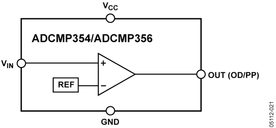 輸出級(jí):開漏低電平有效(ADCMP350)推挽低電平有效(ADCMP352)開漏高電平有效 (ADCMP354)推挽高電平有效((ADCMP356)