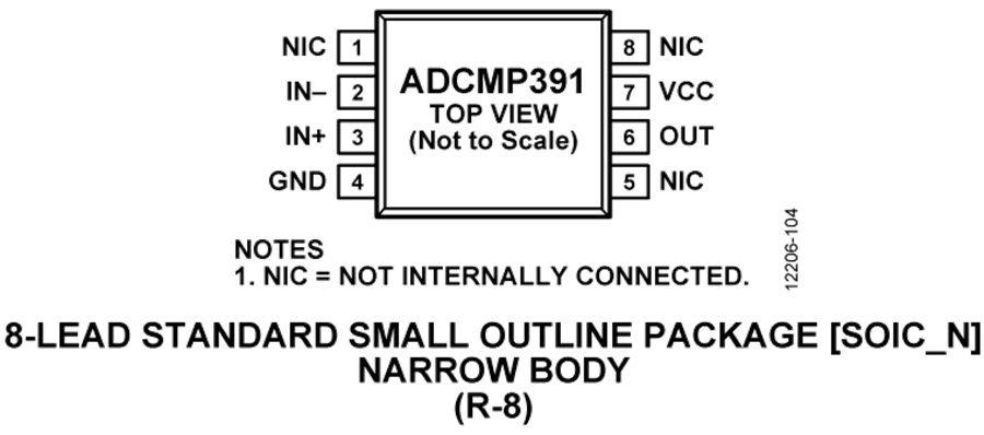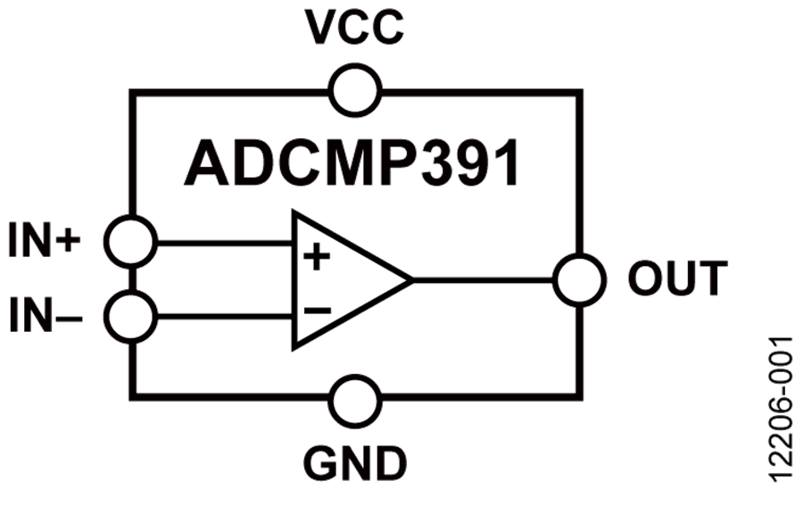 ADCMP391和ADCMP392采用8引腳窄體SOIC封裝,同時ADCMP393采用14引腳窄體SOIC封裝和14引腳TSSOP封裝。比較器的額定工作溫度范圍為?40°C至+125°C擴展溫度范圍。