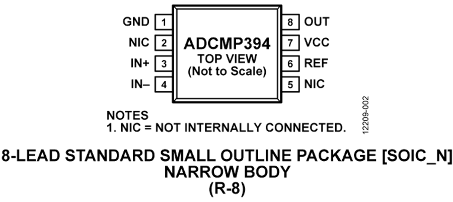 ADCMP394采用8引腳窄體SOIC封裝,額定工作溫度范圍為-40°C至+125°C擴(kuò)展溫度范圍。