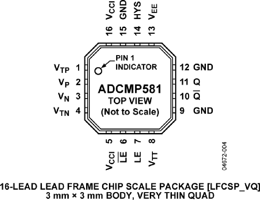 ADCMP580/ADCMP581/ADCMP582采用16引腳LFCSP_VQ封裝。