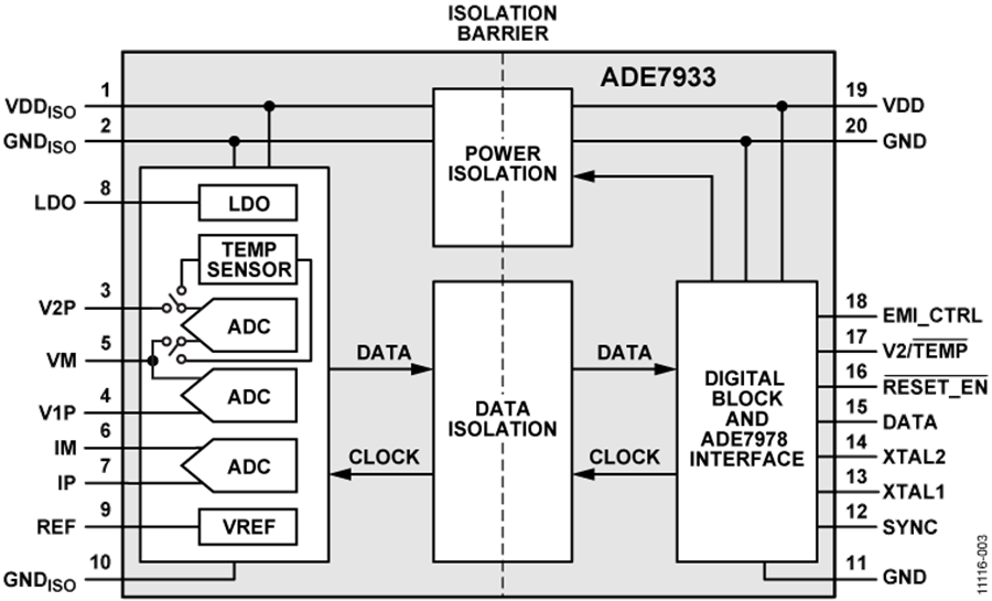 可選隔離式(ADE7933/ADE7932)或非隔離式(ADE7923)零線(xiàn)