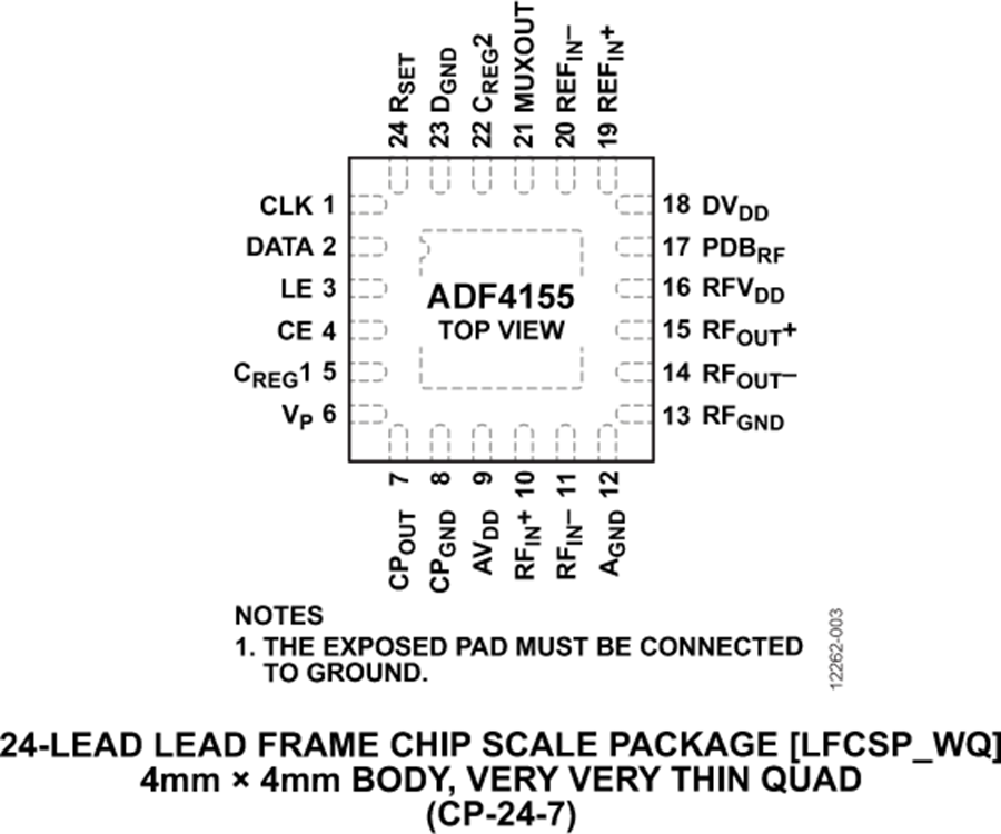 ADF4155采用24引腳4 mm x 4 mm LFCSP封裝。