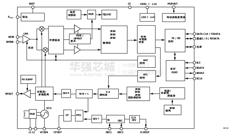片內(nèi)VCO和小數(shù)N分頻PLL