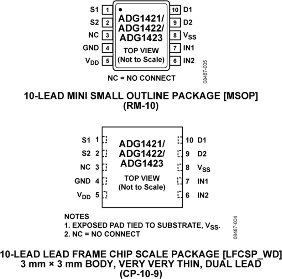 10引腳MSOP和10引腳、3 mm × 3 mm LFCSP封裝
