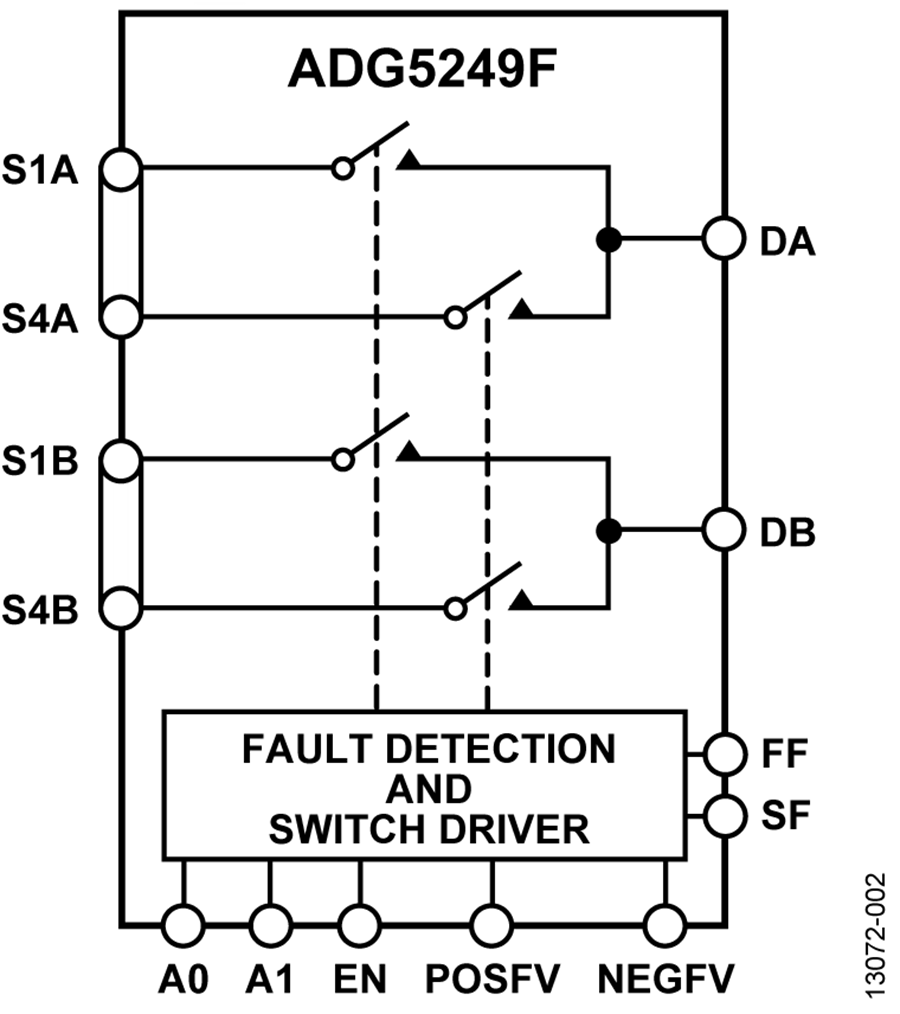 ADG5421F 是一款雙通道 SPST、低導(dǎo)通電阻開關(guān),在源極引腳上具有過(guò)壓保護(hù)、斷電保護(hù)和過(guò)壓檢測(cè)功能。