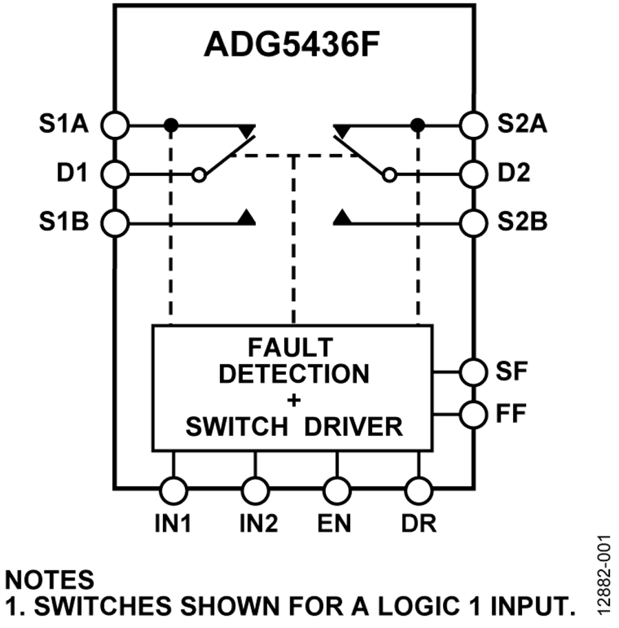 ADG5436F可以采用±5 V(最高±22 V)的雙電源或8 V(最高44 V)的單電源供電。
