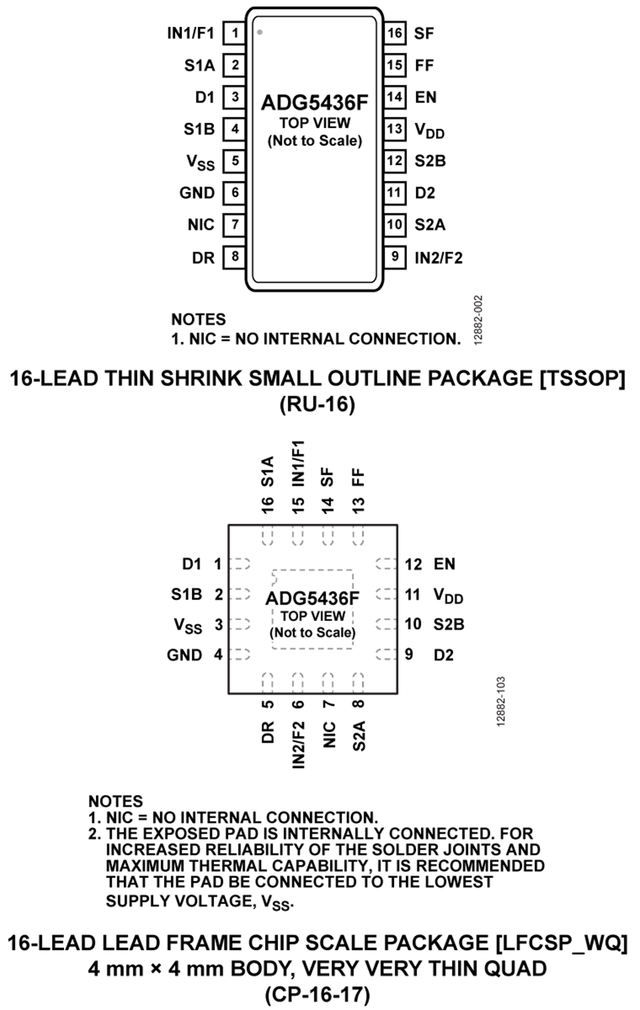 沒有電源時(shí),開關(guān)保持關(guān)斷狀態(tài),通道輸入處于高阻態(tài)。 正常工作條件下,如果任一Sxx引腳上的模擬輸入信號(hào)電平超過VDD或 VSS,并且超出幅度達(dá)到閾值電壓VT,則該通道關(guān)斷,且該Sxx引腳變?yōu)楦咦杩埂?如果通道打開,則漏極引腳根據(jù)漏極響應(yīng)(DR)輸入引腳作出反應(yīng)。 如果DR引腳懸空或拉高,則漏極保持高阻抗懸空狀態(tài)。 如果拉低DR引腳,則漏極拉至超過電軌電平。 無(wú)論有無(wú)供電,相對(duì)于地達(dá)到+55 V或?55 V的輸入信號(hào)電平都會(huì)被阻塞。 ADG5436F具有低導(dǎo)通電阻,并且導(dǎo)通電阻在相當(dāng)大的信號(hào)范圍內(nèi)保持平坦,因此,對(duì)于要求出色線性度和低失真性能的數(shù)據(jù)采集和增益開關(guān)應(yīng)用,該器件堪稱理想解決方案。注意在整篇數(shù)據(jù)手冊(cè)中,雙功能引腳名稱僅參照適用的相關(guān)功能。 完整的引腳名稱和說(shuō)明參見“引腳配置和功能描述”部分。