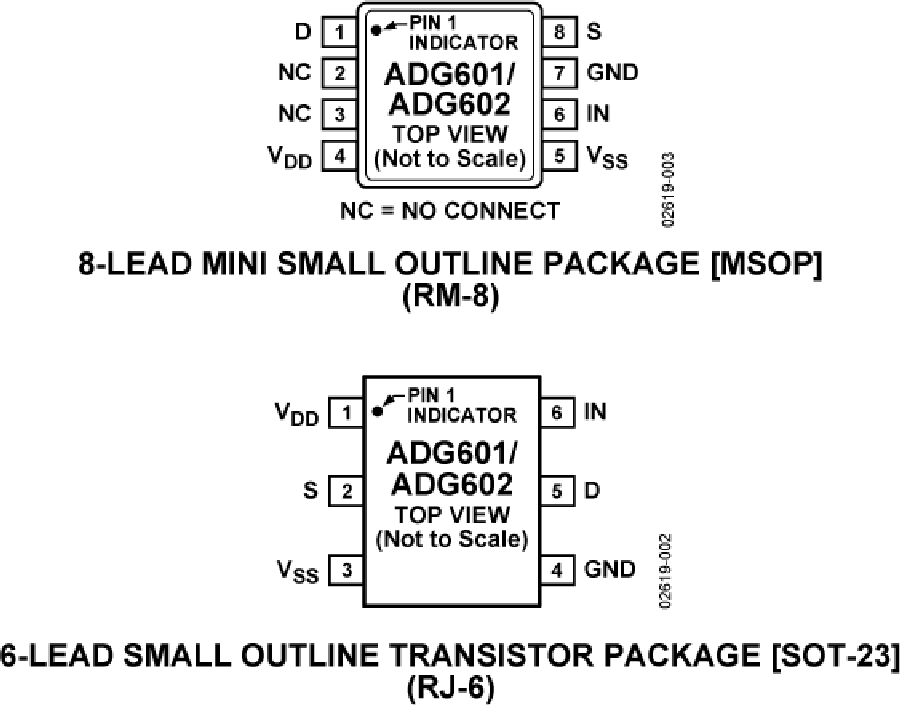 6引腳小型SOT-23封裝、8引腳MSOP封裝以及820 μm × 2255 μm裸片