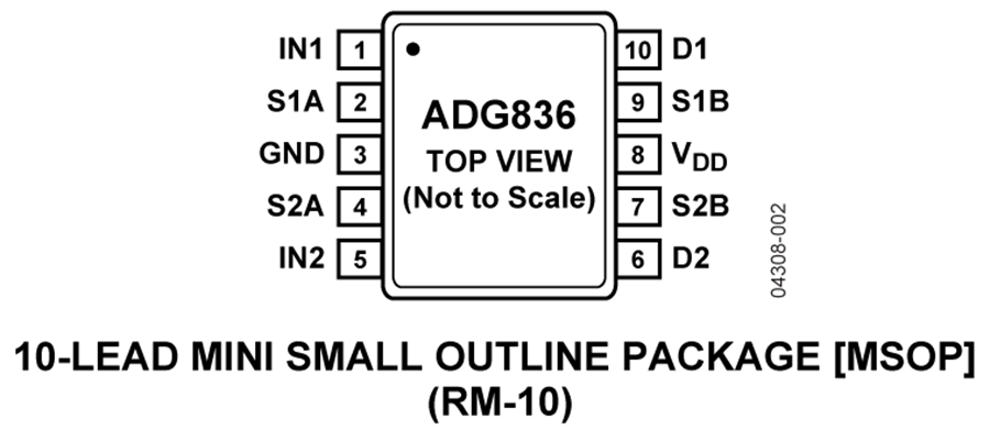 ADG836提供10引腳MSOP和3 mm x 3 mm、12引腳LFCSP兩種封裝。