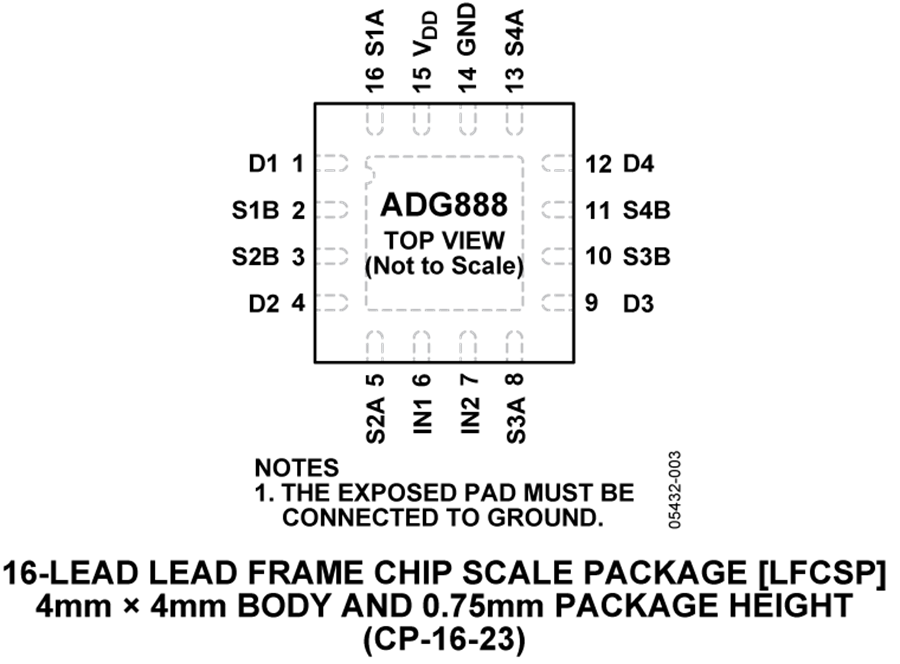 ADG888提供16引腳WLCSP、16引腳LFCSP和16引腳TSSOP三種封裝,因而非常適合空間受限的應(yīng)用。????????