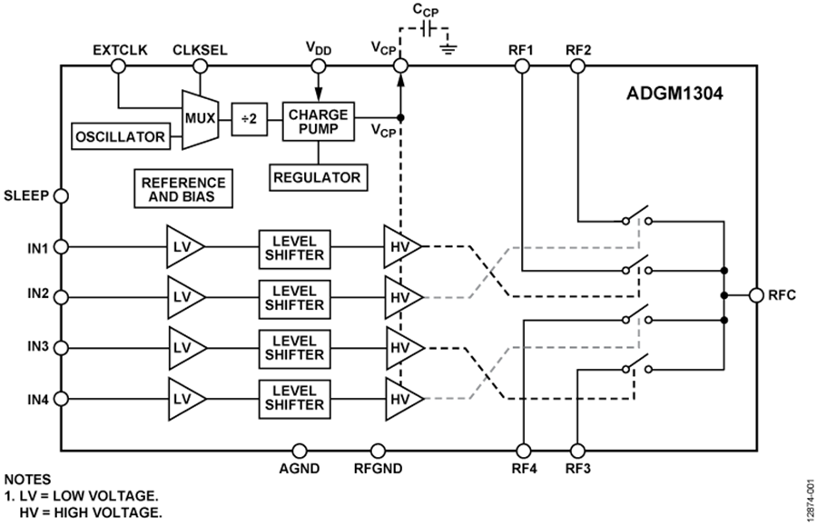 ADGM1004是一款寬帶、單刀四擲(SP4T)開(kāi)關(guān),采用ADI公司的微型機(jī)電系統(tǒng)(MEMS)開(kāi)關(guān)技術(shù)制造而成。利用該技術(shù)可實(shí)現(xiàn)小型、寬RF帶寬、高線性、低插入損耗開(kāi)關(guān),其工作頻率范圍為0 Hz/dc至13 GHz,是滿足各種RF和精密設(shè)備開(kāi)關(guān)需求的理想解決方案。