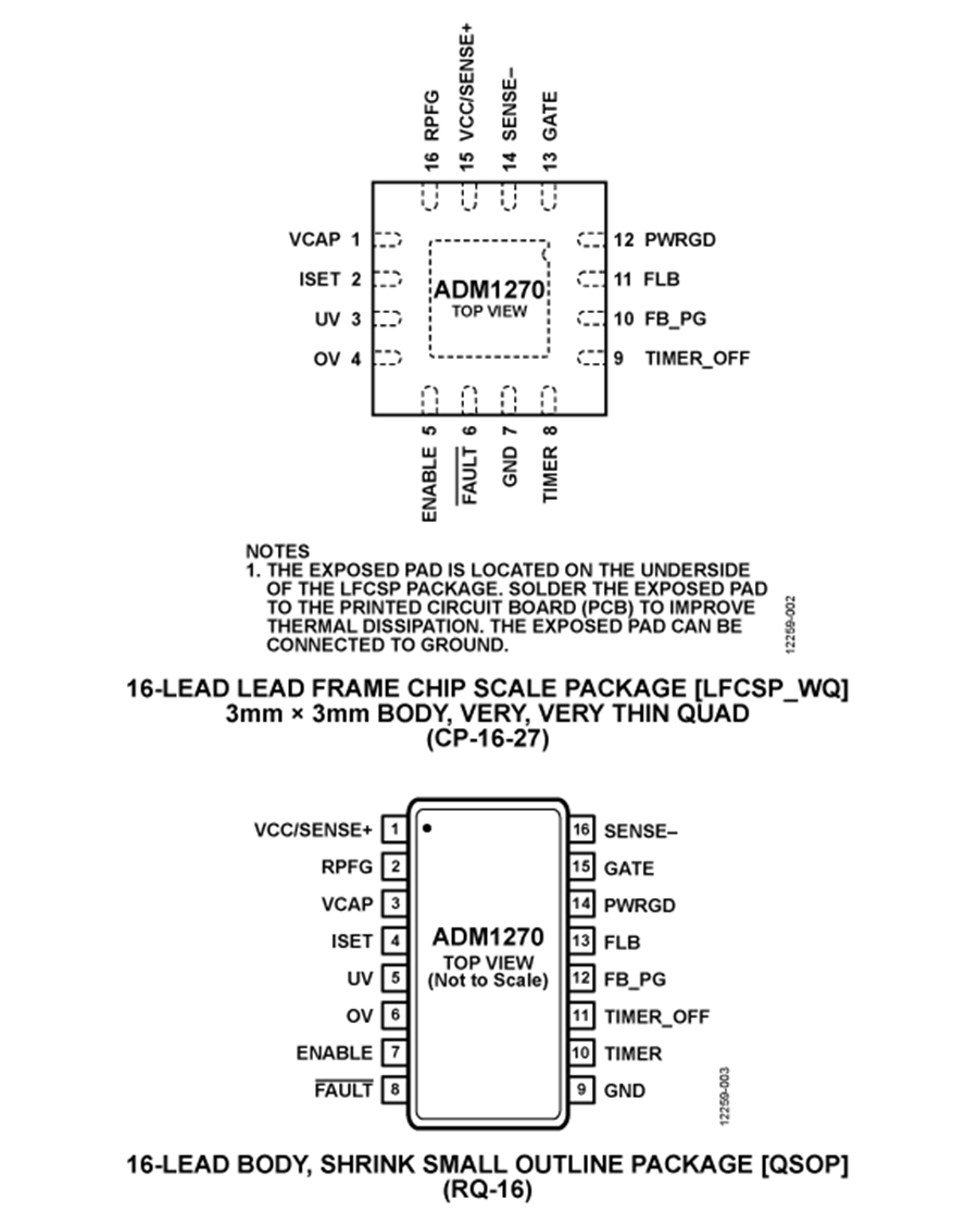 ADM1270采用3x3 16引腳LFCSP和16引腳QSOP封裝。